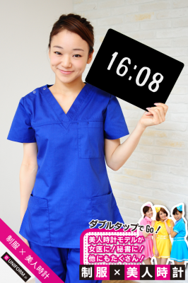 ⇒制服着用モデルが1分おきに画面上で時刻をお知らせしながら切り替わります