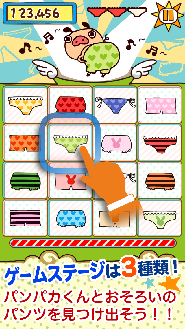 のパンツを探して素早くタップするゲームです。