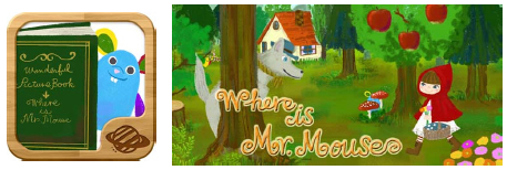 「どこにいるかな?」は有名童話の世界に逃げ込んだネズミを探す、動く“絵さがし絵本”アプリです。