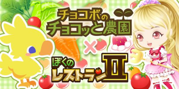 株式会社enish(本社:東京都渋谷区、代表取締役社長:杉山 全功、以下「エニッシュ」)が提供するソーシャルゲーム「ぼくのレストランII」は、2013年12月2日(月)より、株式会社スクウェア・エニックス(本社:東京都新宿区、代表取締役社長:松田 洋祐)のソーシャル農園ゲーム「チョコボのチョコッと農園(以下「チョコボ農園」)」とのコラボキャンペーンを開始致しました。ぜひ、下記よりアクセスしてお楽しみください。