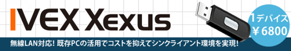 IVEXでは「低コストなシンクライアント環境の実現」をコンセプトに、既存のPCを活用する事でより手軽に安価なシンクライアント環境を実現する製品としてUSBブート型のシンクライアント製品「IVEX Xexus」を開発し販売を開始いたしました。