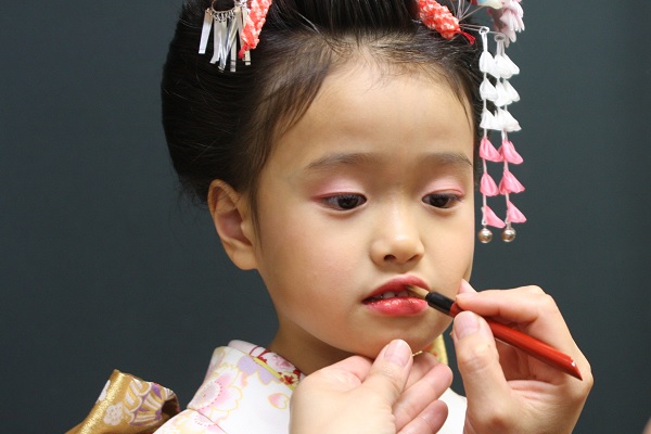 紅を刷く器は、幸福のシンボルとされる手毬をデザインした、有田焼の器を使用しています。