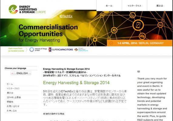 会議:「Energy Harvesting & Storage Europe 2014-環境発電・エネルギー貯蔵欧州会議 2014」