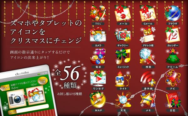 株式会社パルスウィン(本社:茨城県取手市、代表取締役:立川源之)は、自社開発・運営するスマホ女子向けブランド“chu☆chu”よりカスタマイズアプリ「X'masアイコンパック」を2013年12月4日(水)に配信を開始しました。