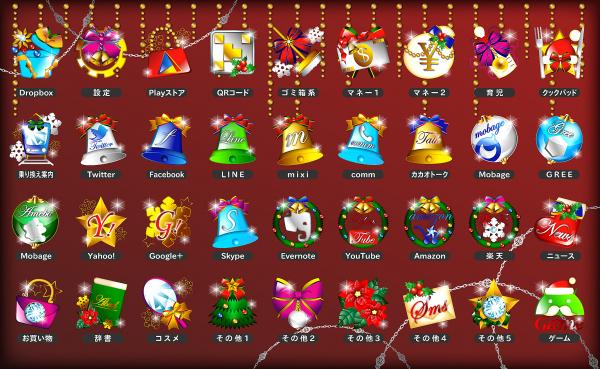 「X'masアイコンパック」は毎日使うスマホ・タブレットのホーム画面にあるアイコンをクリスマスデザインに簡単チェンジ!