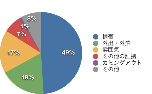 夫の浮気に気づいたきっかけについては、「携帯」や「外泊」も多数ですが、男性では少なかった「雰囲気」や「勘」で気づいたという、 やはり「女性の勘」ともいうべき回答が目立ちます。