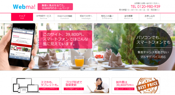 通常20万円~30万円するホームページ作成をこれだけの格安で出来るのは、元来がコンサルティング会社であることによる徹底した工程管理と、営業マンゼロ・webだけでの集客に限定し、オフィスコストを大幅削減、たった1種類の高機能テンプレートを使用して集客ノウハウを一元化し、フィードバックできる体制を整えているためです。