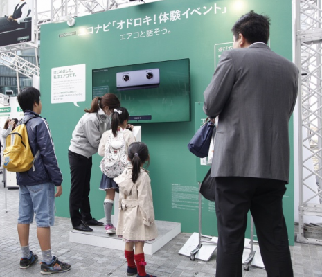 「エアコ」は、パナソニックのホームページで公開されているほか、2013年11月16日(土)~17日(日)に大阪市北区のグランフロント大阪 うめきた広場で開催されたパナソニックのエコナビ「オドロキ!体感イベント」第 2 弾のエアコンブースにて展示されました。