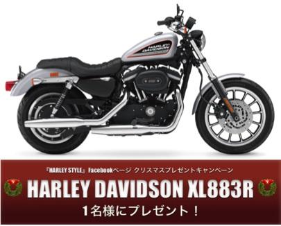 公式facebookページ『HARLEY STYLE』上で、いいね!をして頂いた方の中から抽選で1名様に、SPORTSTER FAMILYのオートバイ『HARLEY DAVIDSON XL883R』をプレゼント致します。