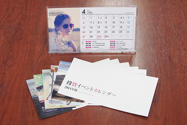 ・内容:ハードケース入り卓上カレンダー(113mm×210mm)/投資イベント表付き