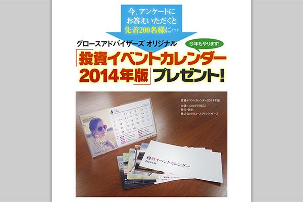 今回は「投資イベントカレンダー 2014年版」をより多くの個人投資家に活用していただくべく、人数限定ではありますがプレゼントさせていただくことになりました。