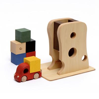 トラックに荷物を積む遊びを楽しむ、対象年齢1歳6ヶ月からの木製知育玩具。極力角を廃したデザインや天然オイルによる塗装を施すなど、お子様への安全性を配慮しています。