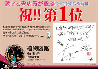 全国の読者が今一番面白い幻冬舎文庫を選ぶ企画「みんなの幻冬舎文庫」が実施され、第一位の作品が有川浩さんの『植物図鑑』に決定しました。