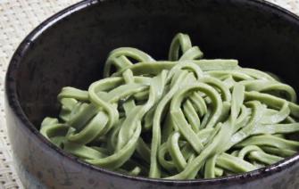 糖質が低い『大豆麺』を使用しております。100g中の糖質量は1.2gと、圧倒的な糖質制限に成功した「低糖質そば」です。口に含むとほんのりと抹茶の香りが漂い、風味にも工夫をしています。市販のつゆを加えても、糖質制限食としてお召し上がりいただけます。
