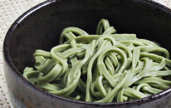 ■ツルツルとそば特有ののどごし感があり、口に含むとほんのり抹茶の香りが漂います。