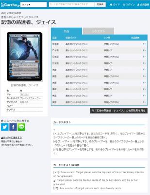 マジック・ザ・ギャザリングのカード効果やパワー・タフネスなどの日本語・英語の両方の情報を掲載。より詳細を知りたい場合は、マジック・ザ・ギャザリングWIKIにリンクを張っていますので、容易に知りたい情報にアクセスすることが可能となります。