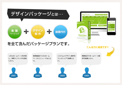デザインパッケージとは、お客様のサイト一式をサーチプラスシリーズを活用して構築する