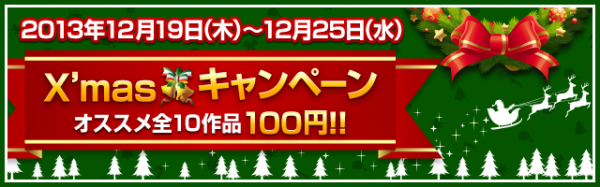 iPhone・iPad電子書籍アプリで年間150万ダウンロード以上の配信実績を誇る株式会社オープンアップス(東京都渋谷区)は、2013年12月19日(木)~25日(水)までクリスマス特別キャンペーンとして一挙10アプリを100円値下げする特別セールを開始します。