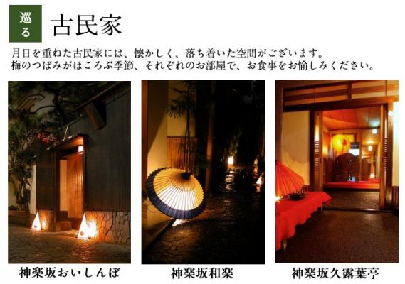 3店舗(神楽坂おいしんぼ、神楽坂和楽、神楽坂久露葉亭)