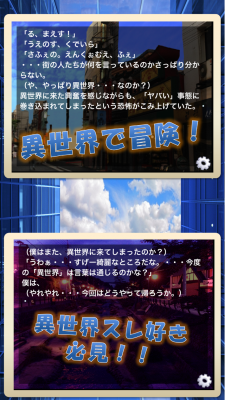 某掲示板でネタを分かっていながらも「もしかしたら本当に・・・!?」と思わずワクワクして読んでしまう”異世界スレッド”を元ネタに面白くて感動できるプレイヤー参加型のノベルを作ってみたいと思い、今回のノベルアプリを開発しました。