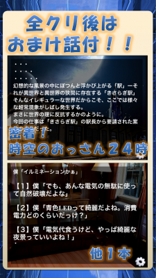 メインストーリーのエンディングをすべて見ると、サイドストーリーを読むことが出来ます。サイドストーリーは、2種類あり、本編とも繋がるような内容になっています。1つは「密着!時空のおっさん24時」という時空のおっさんに密着取材したときのストーリーとなっていて、時空のおっさんの仕事ぶりを知ることができます。もう1つのストーリーには、恋愛要素もあります。こちらの攻略には多少の料理の知識が必要になってきます。