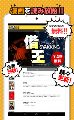「マンガ読破!」は、人気のマンガ家の作品を全巻無料で読むことができる無料アプリ(iOS/Android)です。