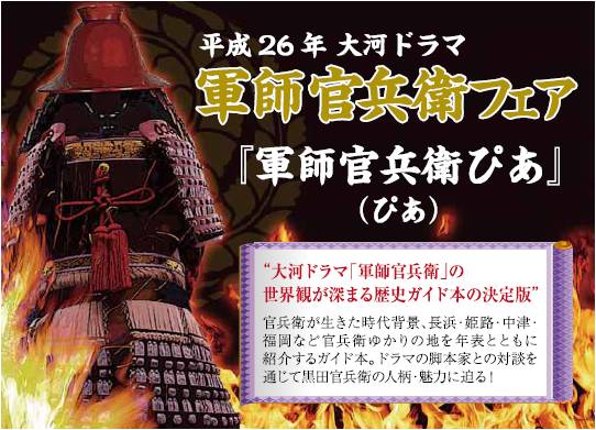 2014年1月5日から放映開始となるNHK大河ドラマ「軍師官兵衛」に関連して発売される黒田官兵衛特集ムック・雑誌を集結させた店頭フェアです。