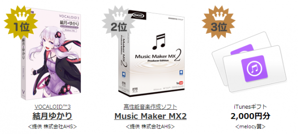得票数の1位から3位まで、AHS提供の音楽ソフトウェア等を入賞賞品として贈呈します。