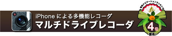 「マルチドライブレコーダ」は、iPhoneのカメラを利用したドライブレコーダーです。交通事故の原因調査に有効とされる事故時の映像を記録するドライブレコーダーの重要性が高まる中、弊社は市販品に比べて安価で、気軽に設置・導入のできるiPhoneアプリのドライブレコーダーを開発いたしました。「常時録画」と「自動録画」2つの録画機能で、事故の重要な証拠となり得る映像を残し、みなさまの運転に安心と安全を提供するドライブサポートアプリケーションです。iPhoneの特長を活かした多機能性と、車載デバイスデザイナーによる洗練されたユーザーインターフェースが好評をいただき、AppStore有料ナビ最高位4位を獲得しました。