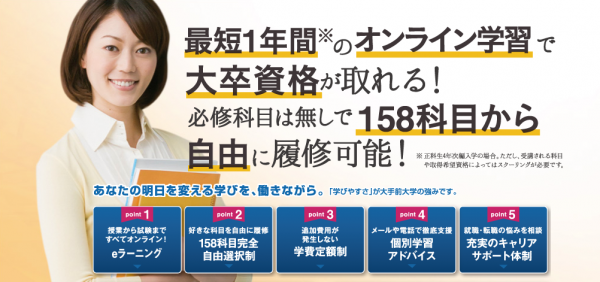・最短1年で大卒資格取得可能(3年次・4年次編入の場合、ネットのみでの卒業も可)
