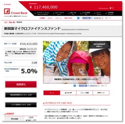 今回、第一号ファンドとして募集した「新興国マイクロファイナンスファンド」は、東南アジアの貧困地域に住む人々の自立支援を目的としたファンドで、新興国支援と資産運用の両立を目指しているのが特徴です。5,000万円の募集に対して、6,400万円の資金が集まりました。