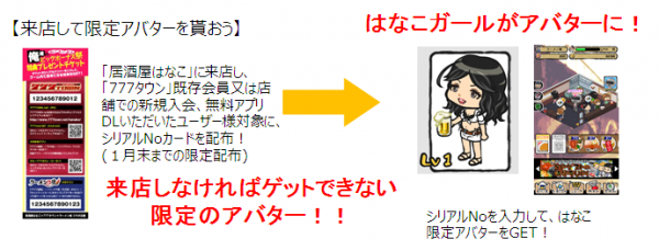 期間中「居酒屋はなこ」にご来店いただいた「777タウン」シリーズ会員の皆様、「ラーメン魂」ユーザーの