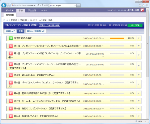 オンラインで大卒資格取得可能な大手前大学通信教育課程(兵庫県西宮市)は、現在も正式に稼働中の総合的オンライン学習管理システム(LMS:Learning Management System)「el-Campus」の無料体験サービスにおいて、12月24日より、実際の大学のeラーニング授業「プレゼンテーション演習I(基礎)」の提供を開始しました。この科目では、プレゼンテーションの基礎知識やコツ、話し方の基本など、聞き手を納得させ成功へ導くプレゼンテーションについて学びます。