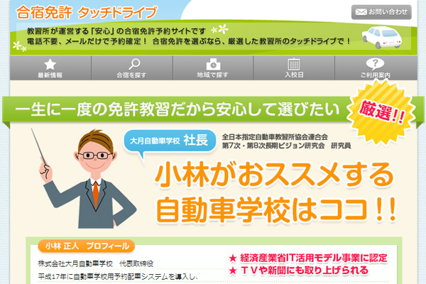 『合宿免許タッチドライブ』は、電話不要でスマートホンからのみの申込みで合宿免許の予約が完結出来るサービスです。当ホームページが12月20日に、リニューアルオープン致しました。さらに見やすく、そしてこれから合宿での免許取得を考えている方たちの役に立つ情報発信も開始しました。当サービスの運営者であり大月自動車学校社長、小林正人によるブログをどうぞご期待下さい。