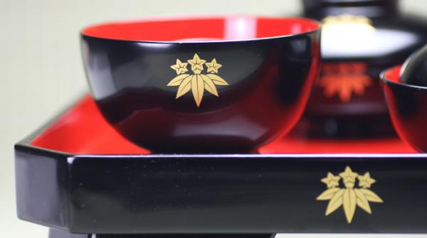 こちらは伝統的な越前漆器。男の子用の喰初膳(お食い初め膳)です。