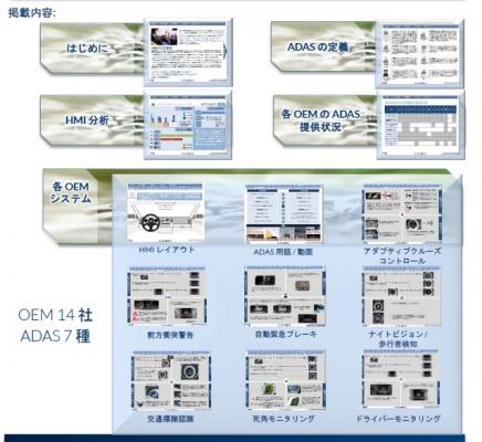 英国調査会社SBD (Secured by Design Ltd)の調査レポート「ADAS HMI プラクティス:OEM の ADAS 実装方法 - ADAS HMI Practices: An overview of HMI implementation of ADAS by OEM」は、OEM 14 社が採用している ADAS 7 種の HMI 実装方法の詳細を掲載し、各システムにおけるHMI 実装方法を比較しています。