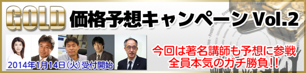 2014年2月28日(金)の金価格を予想し、当選者に賞金・賞品をプレゼントします。
