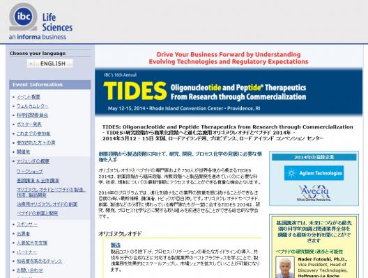 学会:「TIDES:研究段階から商業化段階へと進む治療用オリゴヌクレオチドとペプチド 2014年」