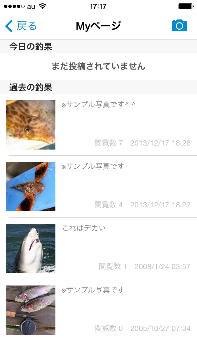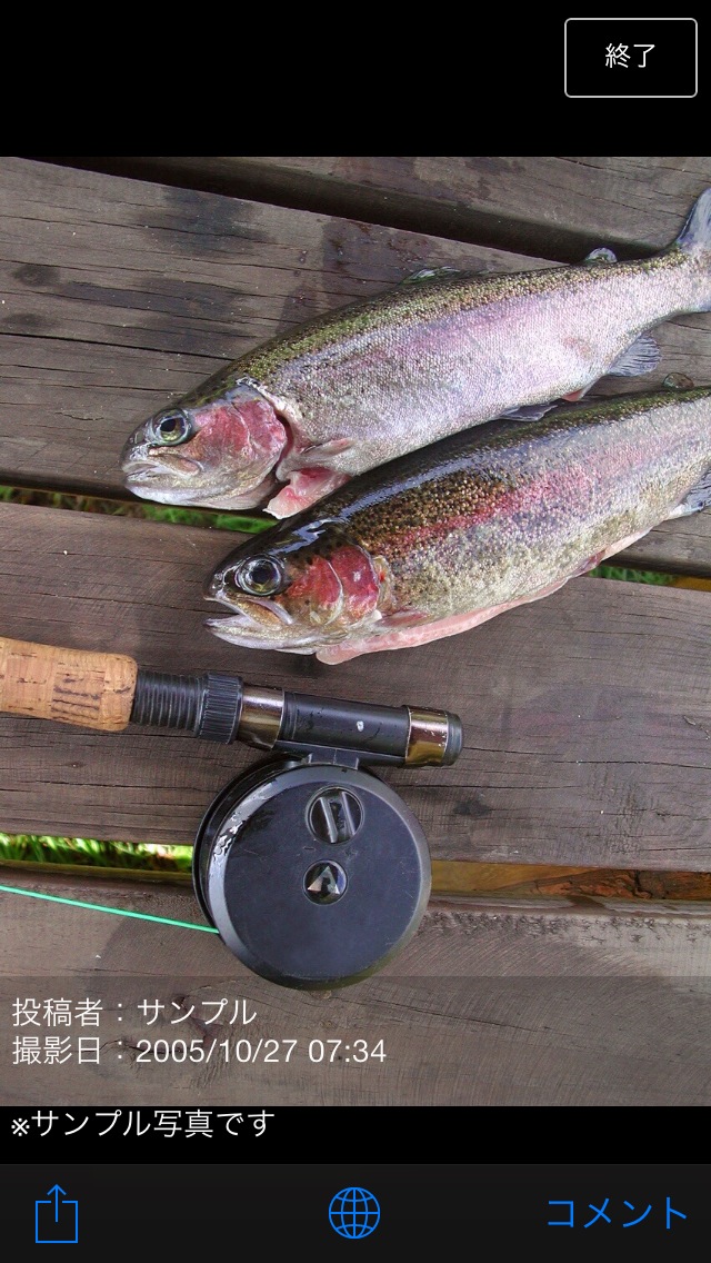 √ 釣った魚の写真を魚種別に投稿できます。コメントも付けられます。