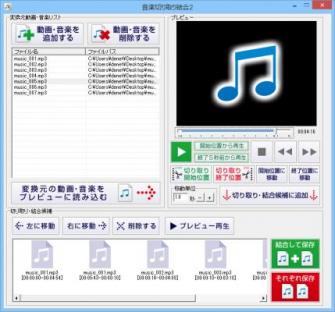 『音楽切り取り結合2』は、お手持ちの音楽や動画ファイルの