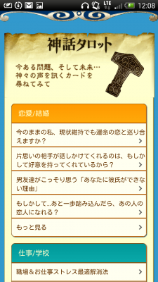 【北欧守護神占い】では、自分自身や恋の相手、友人などの性格・性質を知り、どのように対応すれば良いかアドバイスを行い、【神話タロット】では、恋愛に関すること、仕事や勉強に関すること、人生、運命に関することなど、細やかなメニューによって、知りたいことを簡単に、ダイレクトに占うことができます。