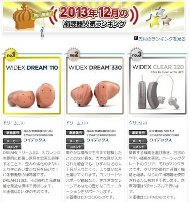 ■補聴器人気12月ランキング:http://www.widexjp.co.jp/ha_rank/2013/12.html