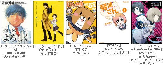 株式会社パピレスでは、「コミックシアター」配信開始を記念し、映像化された人気作、佐藤秀峰著『ブラックジャックによろしく』を始め、東屋めめ著『リ コーダーとランドセル』のほか、アトラス原作・沙垣長子画『デビルサバイバー2-Show Your Free Will-』、えのきづ著『琴浦さん』、うず著『しばいぬ子さん』等全8作品の1話を無料公開しております。