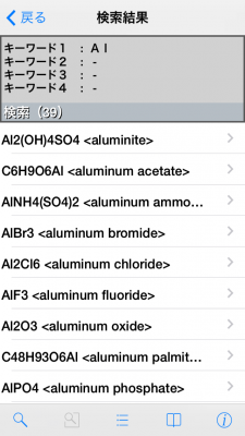 ●豊富な検索オプションを用意(前方一致/後方一致/完全一致/条件検索/化学式検索/全文検索/絞り込み検索-元素記号・科学式 絞込 )文字を入力すると候補見出し語が表示されるインクリメンタルサーチに対応(全文検索、絞り込み検索を除く)