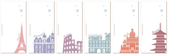 ※左から東京、モナコ、ローマ、コペンハーゲン、バリ、京都
