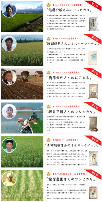 日本最大のお米コンクール「米・食味分析鑑定コンクール」で過去に総合部門で金賞を受賞した農家のみを集めた期間・数量限定の頒布会です。