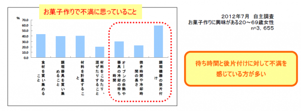 手作りでお菓子を作る際、余熱の待ち時間や焼き上げるまでの所要時間が長いこと、後片付けが面倒なことに不満を感じている方が多くいることがわかりました。そこで、電子レンジを使って、短時間で簡単にクッキーを作ることができる「チンするレシピ クッキーマジック」を開発し、発売いたします。