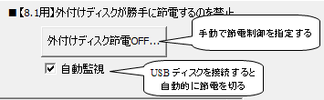 自動監視の場合は、USBの接続を自動認識し、そのUSBがスリープしないように自動設定します。