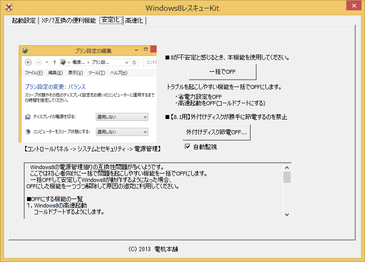 Windows8を使用していて不安定を感じたならばこれらのOFFを推奨します。