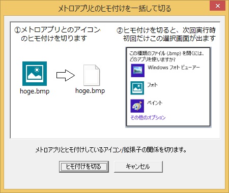 併せて、拡張子の関連付けが引き起こすモダン画面へ遷移の防止装置、拡張子エディタ呼び出し機構を実装。